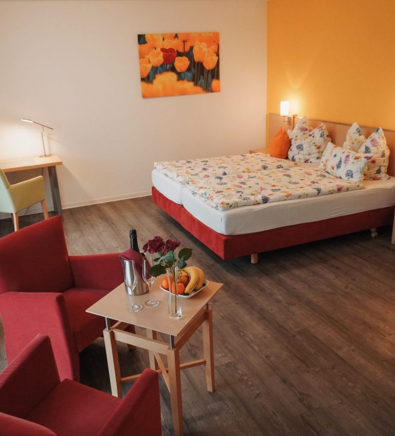 Entspannen Sie sich in unseren stilvoll eingerichteten Zimmern für einen erholsamen Aufenthalt.